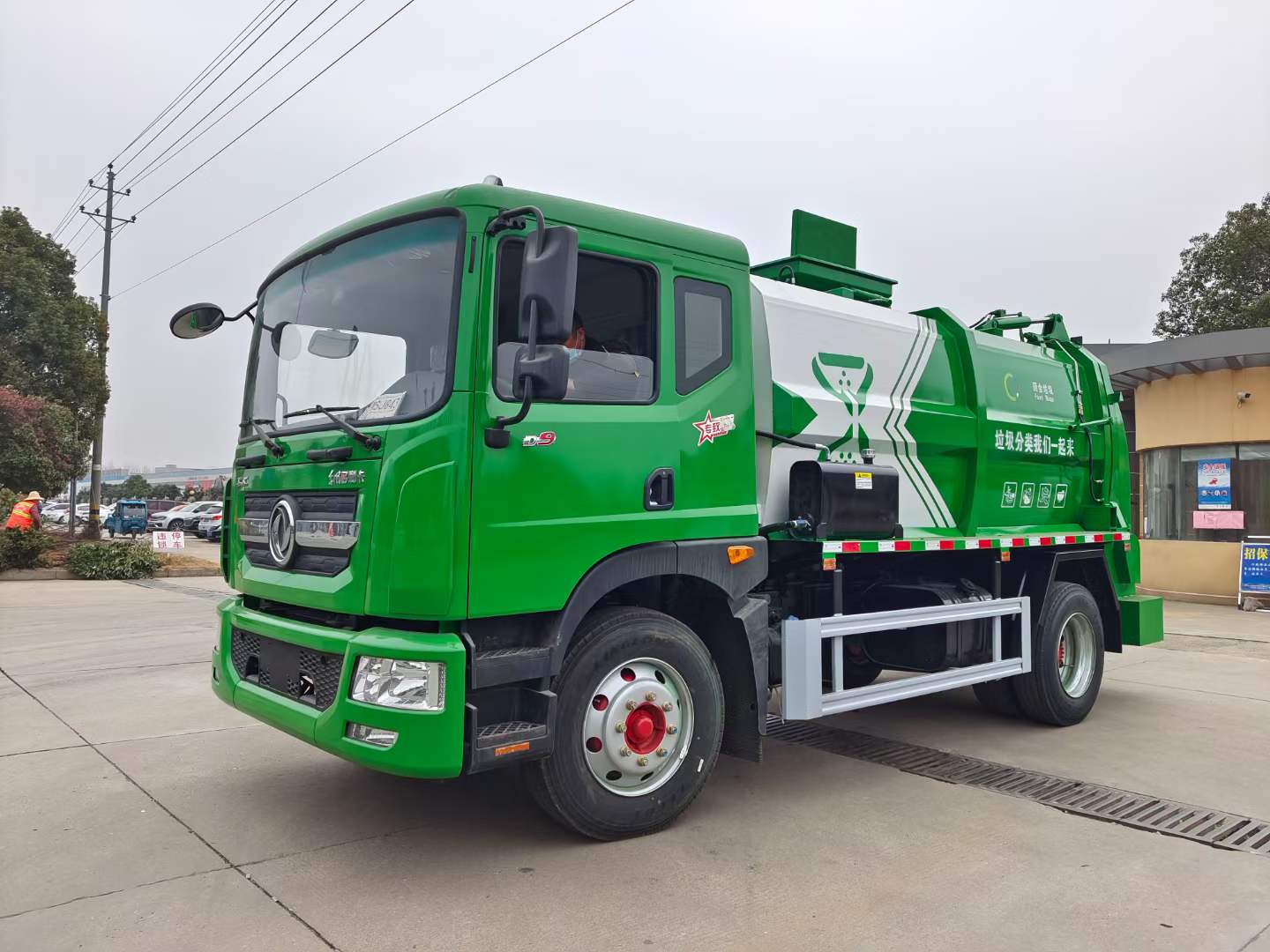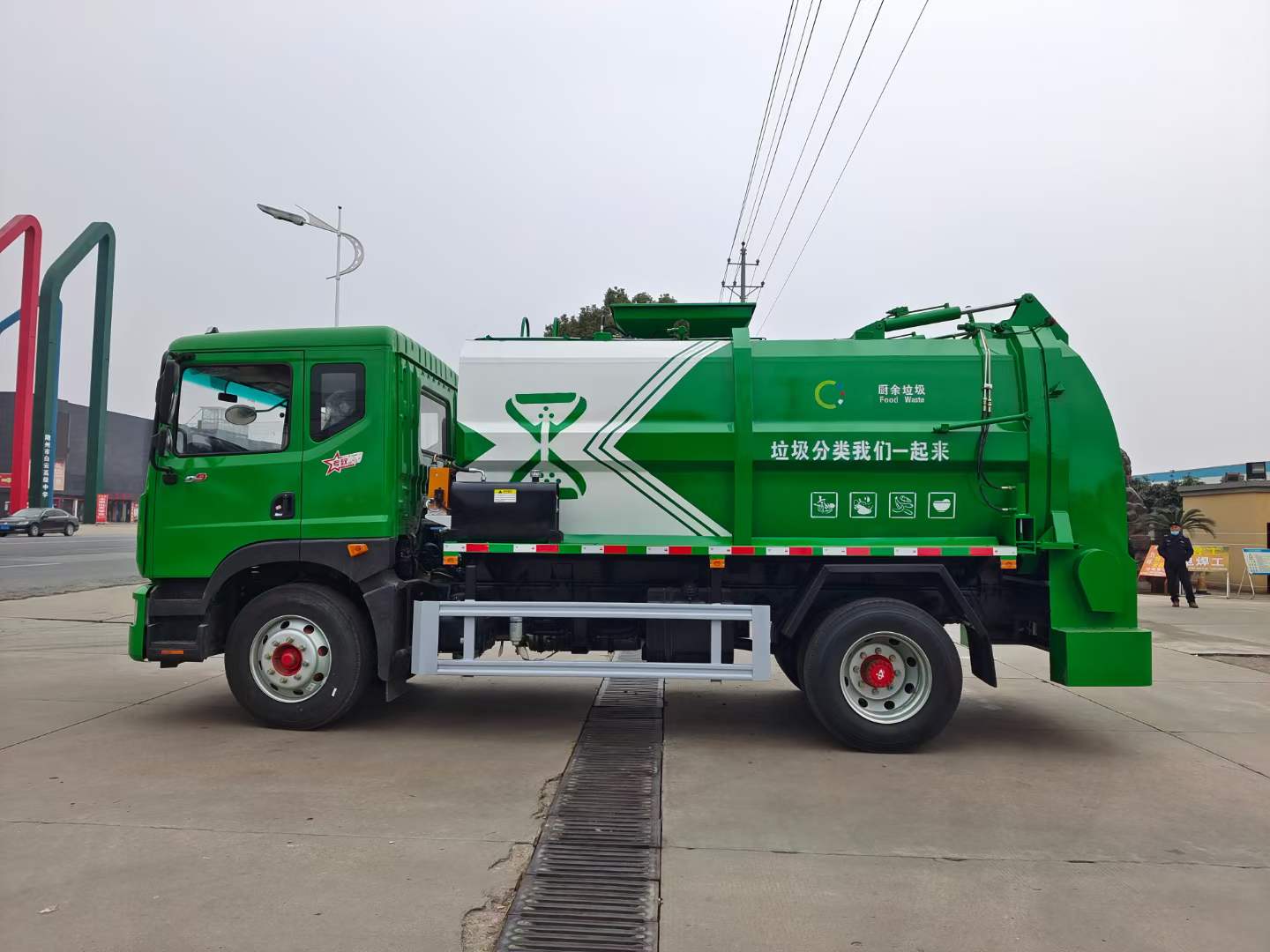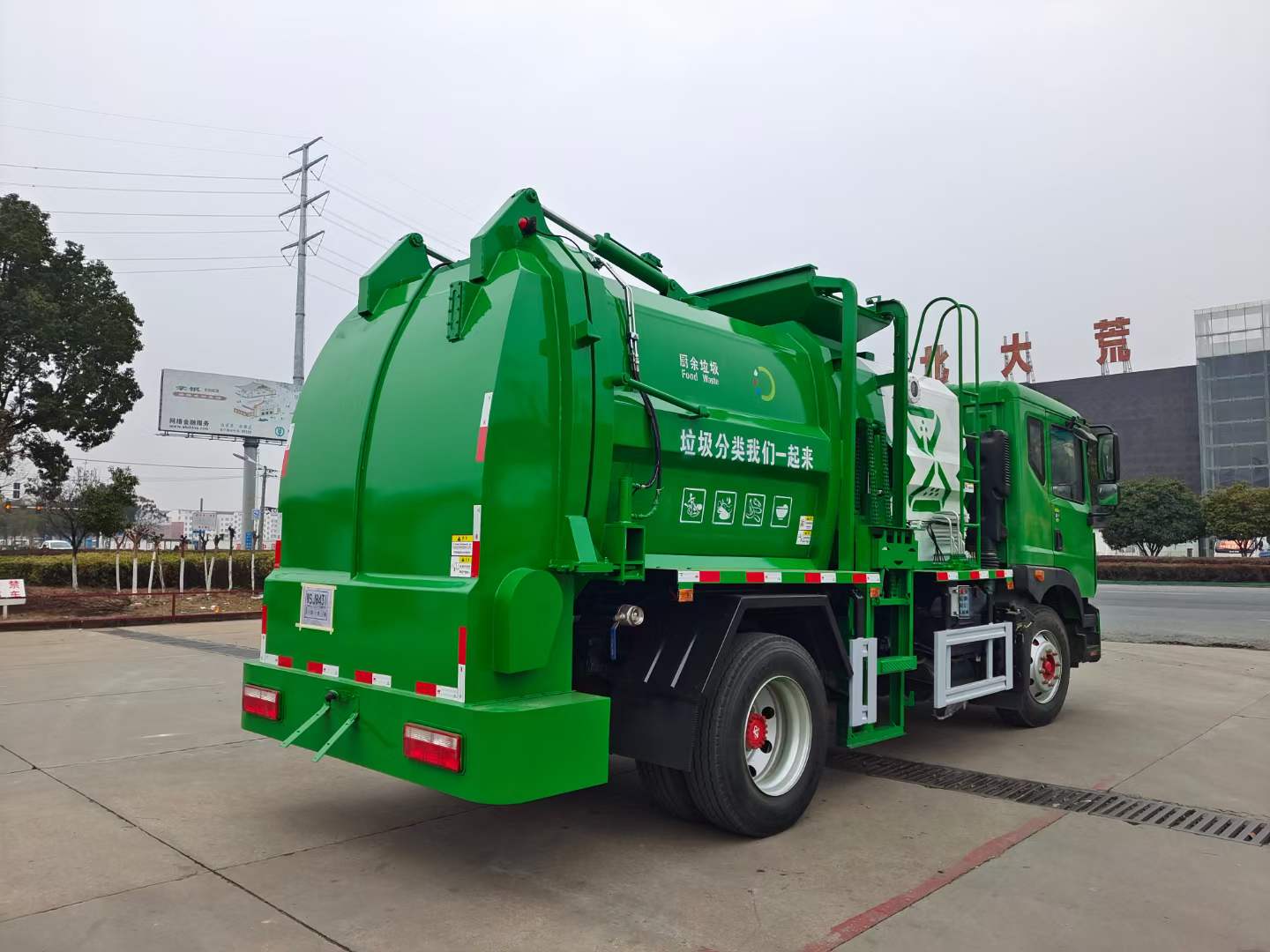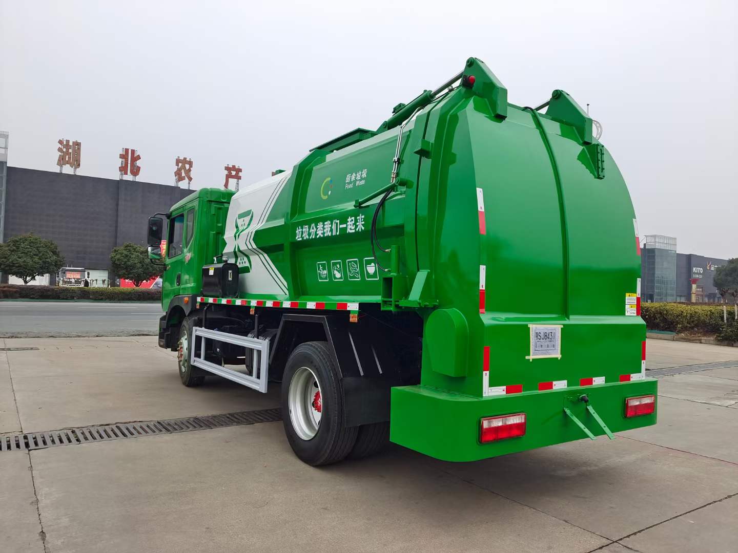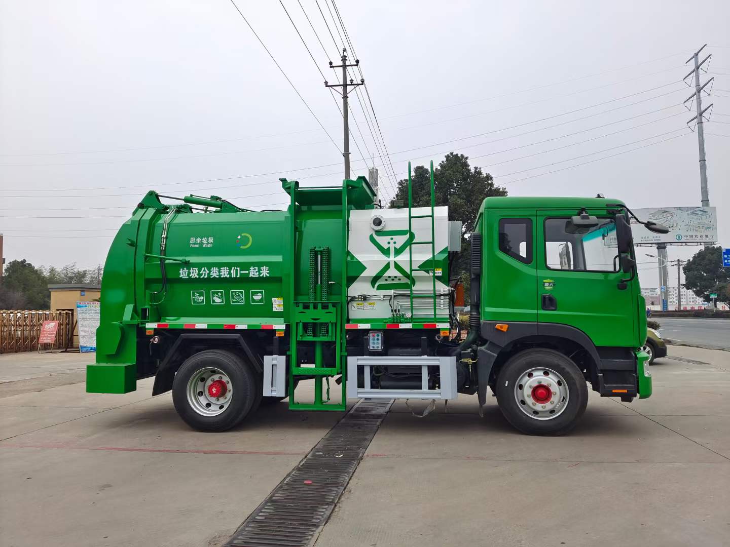 5、密閉排料(選裝):不用后門(mén)打開(kāi),液態(tài)垃圾可以通過(guò)管道路排出,固態(tài)垃圾可以通過(guò)旋轉(zhuǎn)絞籠擠壓排放出車(chē)廂。